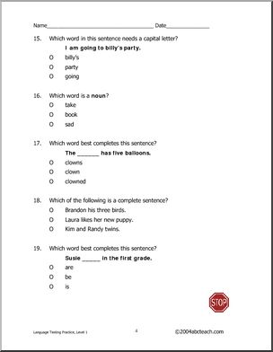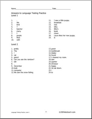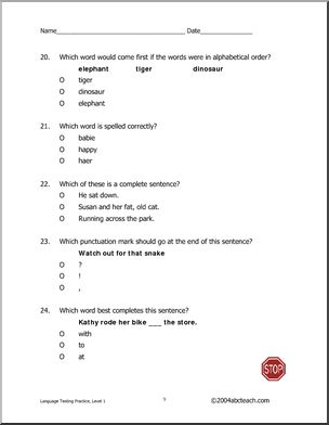 Language Arts (Level 1) Testing Practice