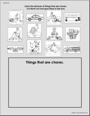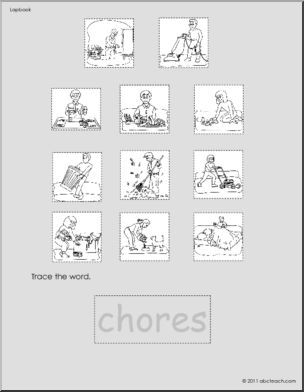 An 8 page set of templates to create a lap book on the theme “Chores.” Includes templates for pockets, flip books, match books, flash cards and more.