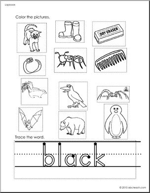 A seven page set of templates for creating a lapbook about the color black, with templates for booklets, flashcards, pockets, matchbooks, flip books, coloring page and more.