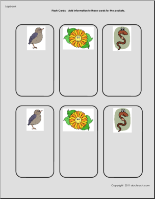 A six page template with color illustrations for a lap book on the signs of Spring with pockets, flash card, match book, booklet templates, an observe, draw and write worksheet, and an acrostic poetry form.