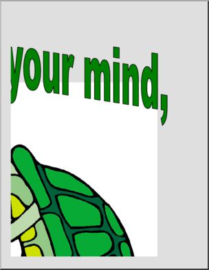 To use this four-page poster depicting a jogging turtle: print the pages, fold the edges, then glue or tape together along the edges. Laminate the poster for longer use.