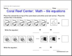 Learning Center: Coral Reef – Math – add/subtract to 10 (pre-K/primary) set 2