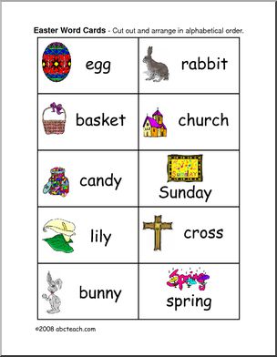 Put the words, from ìchurchî to ìSundayî, in alphabetical order.