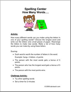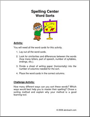 Directions for spelling centers with four different spelling center activities. The colorful pages include directions for the teacher on how to organize successful learning centers for spelling.