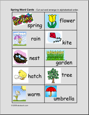 Put the spring themed words in alphabetical order.