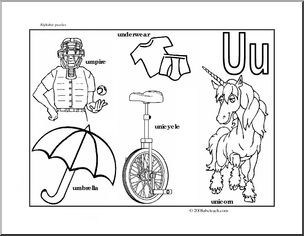 Easy (4-5 piece) and simple (8-10 piece) black & white and color puzzles and b&w and full color pictures of words that start with the letter U to use as coloring pages, signs, etc. All six pages in one download.