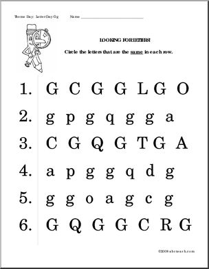 PAGE 1: Circle the letters in the row that match the first letter. PAGE 2: Circle the letters that are the same in each row.