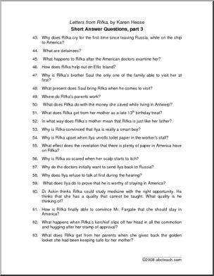 Use this ‘Book: Letters from Rifka (middle/high school)’ printable worksheet in the classroom or at home. Your students will love this ‘Book: Letters from Rifka (middle/high school)’. Vocabulary review, geography, short answer comprehension, and essay questions to review Karen Hesse’s touching story, told via a Jewish girl’s letters to her cousin as she moves across […]
