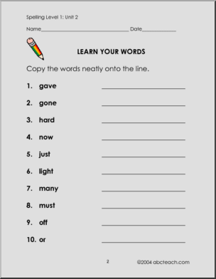 Use this ‘High Frequency Spelling: Level 1, Unit 2’ printable worksheet in the classroom or at home. Your students will love this ‘High Frequency Spelling: Level 1, Unit 2’. Worksheets to help learn these spelling words: gave, gone, hard, now, just, light, many, must, off, or. Cloze exercise, word search, missing letters and more!