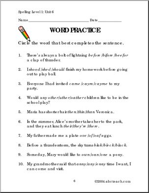 Use this ‘High Frequency Spelling: Level 1, Unit 6’ printable worksheet in the classroom or at home. Your students will love this ‘High Frequency Spelling: Level 1, Unit 6’. Worksheets to help learn these spelling words: of, other, own, should, than, there, any, before, black, came. Cloze exercise, word search, missing letters and more!