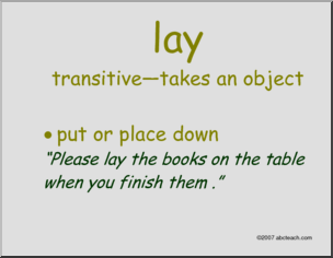 Use this ‘Poster: Lie or Lay? (ESL)’ printable worksheet in the classroom or at home. Your students will love this ‘Poster: Lie or Lay? (ESL)’. Illustrated poster showing correct usage of lie and lay.
