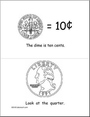 This Look at the Coins (b/w) Early Reader is perfect to practice money skills. Your elementary grade students will love this Look at the Coins (b/w) Early Reader. “Look at the dime. The dime is 10 cents.” This easy reader booklet introduces young readers to simple sentences with words about U.S. coins.