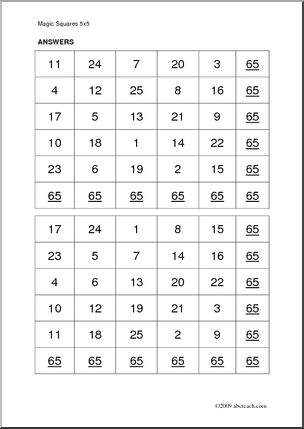 Magic Squares 5 x 5 Worksheet
