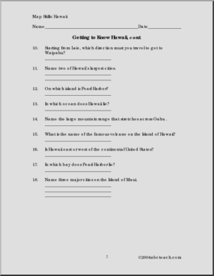 Questions to go with a map of Hawaii (not included).