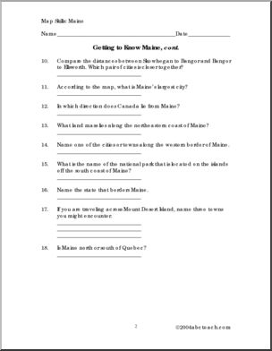 Questions to go with a map of Maine (not included).
