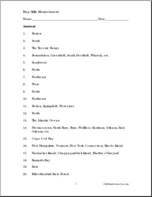 Questions to go with a map of Massachusetts (not included).