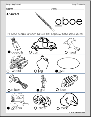 Use this ‘Beginning Sounds: Match – Long O’ printable worksheet in the classroom or at home. Your students will love this ‘Beginning Sounds: Match – Long O’. Fill in the bubbles next to the pictures that begin with the ‘long o’ sound. This is a great activity for pre-readers and pre-writers.