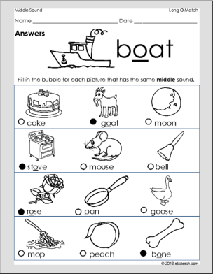 Use this ‘Middle Vowel Sounds: Match – Long O’ printable worksheet in the classroom or at home. Your students will love this ‘Middle Vowel Sounds: Match – Long O’. Fill in the bubbles next to the pictures that have the long ‘o’ sound in the middle. This is a great activity for pre-readers and pre-writers.