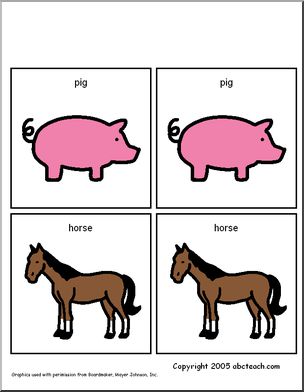 Colorful picture cards to use with matching activities and games.