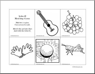 Match the b/w pictures of words that start with the letter G to their color counterparts. Use alone or in conjunction with our other “initial letter” sets for a great memory game.