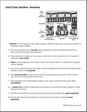 Match the definitions to the vocabulary of a leaf cross section. Color.