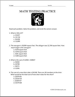 This Math (4-6 grade) Testing Practice is perfect to practice counting skills. Your elementary grade students will love this Math (4-6 grade) Testing Practice. Formatted like a standardized test, this 7 page document tests math skills such as addition, multiplication, units of measurement, percentages, shapes, division, area, perimeter, and more. These are approximately the skills […]
