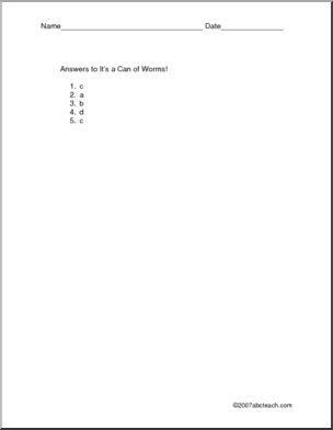 “Mr. Thomas bought a can of worms at Williams’ Bait Shop. The worms cost $2.12.” Five story problems with a worm theme.