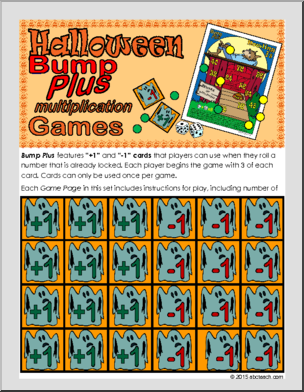 A new plus to the popular Bump game where players roll dice, multiply, and cover the sum. This colorful Halloween set includes 5 multiplication games: mixed facts 1-6, times 7, times 8, times 9, and times 10. Laminate for a fun, reusable classroom game.