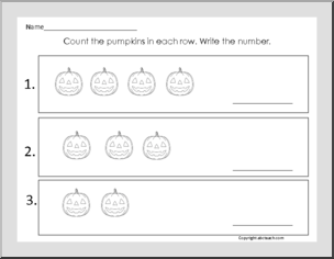Count the pumpkins on each line and write the number. Includes flashcards 1-6 for counting and matching practice. Great for Halloween!