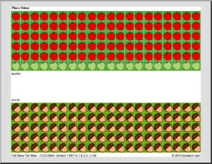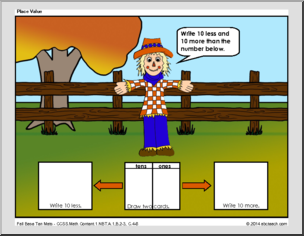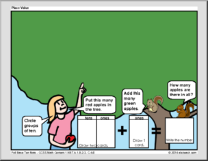 Eight colorful math mats and cards for practice in grouping numbers into tens and ones, and using place value to count, compare, add and subtract. Printable manipulatives are included or you can use real items. CC: Math: 1.NBT.A.1, B.2-3, C.4-6