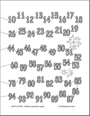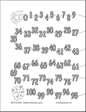 This Math Stars Board Game (b/w) is perfect to practice addition and subtraction skills. Your elementary grade students will love this Math Stars Board Game (b/w). Practice addition and subtraction to (or from) 100 with this simple board game.
