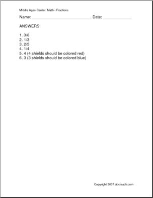 This Medieval Fractions (elem) Worksheet is perfect to practice fraction skills. Your elementary grade students will love this Medieval Fractions (elem) Worksheet. “Color 1/2 of the shields red.” Simple fractions with a medieval theme.