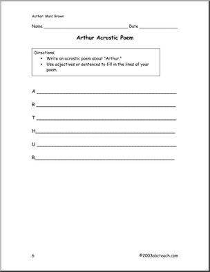Use this ‘Biography: Meet Author Marc Brown (primary/elem)’ printable worksheet in the classroom or at home. Your students will love this ‘Biography: Meet Author Marc Brown (primary/elem)’. The writer of the popular ‘Arthur’ series is profiled in this mini-unit, which features a reading comprehension, a word find, creative writing prompts, and more.