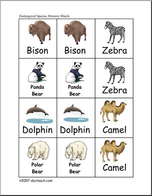 18 matching pairs of endangered animals (from BAT to WOLF) for a variety of fun matching/memory games.