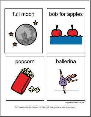 Fun Halloween pictures and words make these flashcards useful for Halloween activities. Make two sets for a concentration/memory game.
