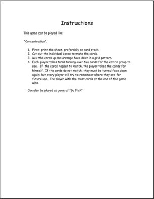 Play “Concentration” or “Go Fish” with these word/image cards using basic kitchen vocabulary.