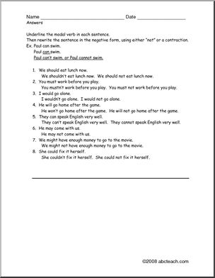 Use this ‘Worksheet: Modal Negation (ESL)’ printable worksheet in the classroom or at home. Your students will love this ‘Worksheet: Modal Negation (ESL)’. Practice using modal auxiliaries in the negative form.