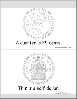 This Mone Basic Canadian Coins (b/w) Early Reader is perfect to practice money skills. Your elementary grade students will love this Mone Basic Canadian Coins (b/w) Early Reader. Five basic Canadian coins (nickel, dime, quarter, 1/2 dollar and dollar) are illustrated and their value explained in this booklet for early readers.