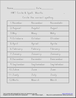 Use this ‘Spelling Unit: Months Set (HWT Manuscript)’ printable worksheet in the classroom or at home. Your students will love this ‘Spelling Unit: Months Set (HWT Manuscript)’. Spelling unit in HWT manuscript font. Includes spelling list, word unscramble and circle and spell.