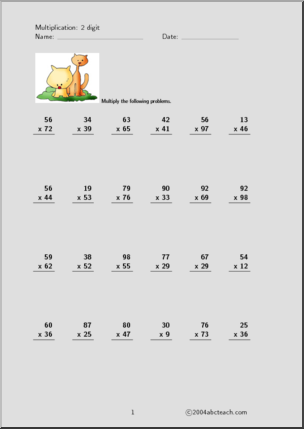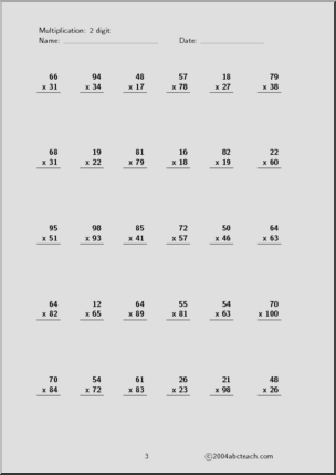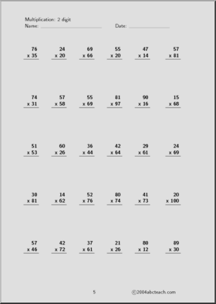 This Multiplication (2 digits, set 4) Worksheet is perfect to practice multiplication skills. Your elementary grade students will love this Multiplication (2 digits, set 4) Worksheet. 5 pages of worksheets to practice 2-digit multiplication, plus answers.