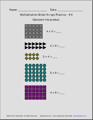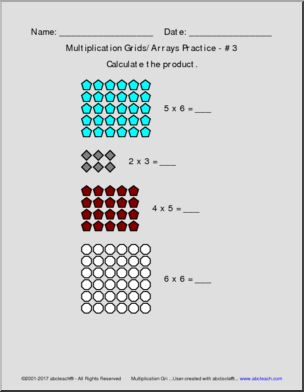 10 pages of multiplication practice with grids/arrays. Created with abctools Math Worksheet Generators. CC: 2.OA.C.4, 3.OA.A.1