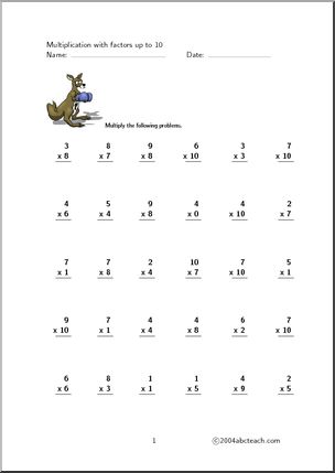 This Multiplication (up to 10, set 6) Worksheet is perfect to practice multiplication skills. Your elementary grade students will love this Multiplication (up to 10, set 6) Worksheet. 5 pages of multiplication worksheets. Factors up to 10, with answers.