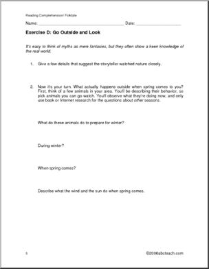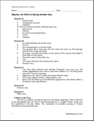 A mini-unit about the Australian wind that brings the spring. Includes reading comprehension questions, questions to show the relationship between the myth and reality, and promts for writing your own myth about the coming of spring.