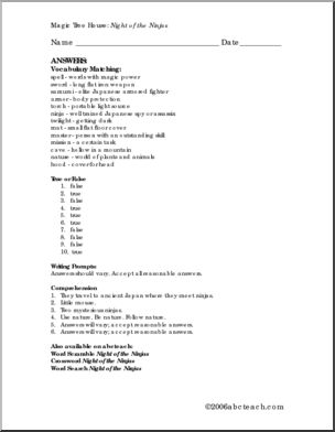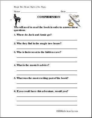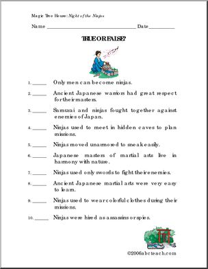Use this ‘Book: Night of the Ninjas (primary/elementary)’ printable worksheet in the classroom or at home. Your students will love this ‘Book: Night of the Ninjas (primary/elementary)’. Reviews vocabulary featured in Mary Pope Osborne’s Magic Tree House book “Night of the Ninjas”; includes a “true/false” ninja quiz and short writing prompts. Most of this lesson […]