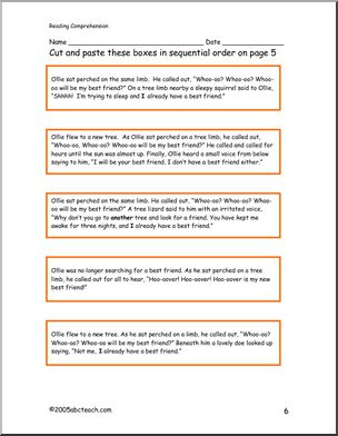 Use this ‘Fiction: Ollie Owl (primary/ elementary)’ printable worksheet in the classroom or at home. Your students will love this ‘Fiction: Ollie Owl (primary/ elementary)’. “Whoo-oo will be my best friend?†A cute reading comprehension for elementary students, or a story to read to primary students.