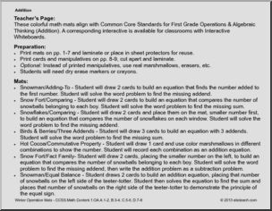 Operations & Algebraic Thinking, Addition – Winter Theme (grade 1) Math Mats