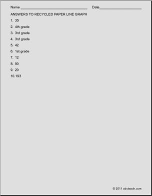This Paper Recycling (elem) Line Graph is perfect to practice graphing skills. Your elementary grade students will love this Paper Recycling (elem) Line Graph. A line graph that illustrates the number of pounds of paper recycled by grades 1-5 with a set of ten questions on the same page, plus an answer sheet.