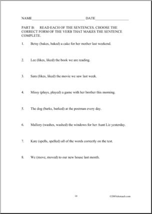 Use this ‘Worksheet: Past and Present Tense Verbs (elem/upper elem)’ printable worksheet in the classroom or at home. Your students will love this ‘Worksheet: Past and Present Tense Verbs (elem/upper elem)’. Solid, varied practice of simple past and present tenses with regular verbs.