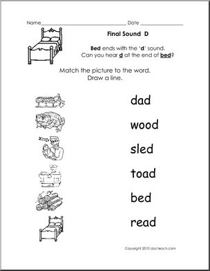 A three page set of activities focused on the consonant final sound “d.” Includes circle word, match, write word.