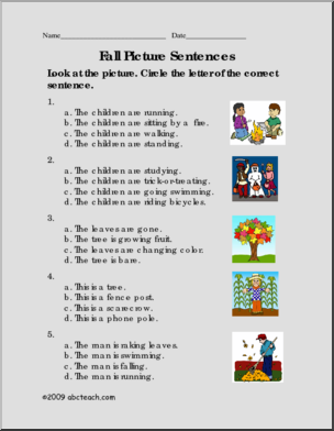 Use this ‘Worksheet: Picture Sentences – 1 (primary)’ printable worksheet in the classroom or at home. Your students will love this ‘Worksheet: Picture Sentences – 1 (primary)’. “The boy is riding a bike.” Choose the sentence that best describes the picture.